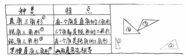 以“锐角三角形、直角三角形和钝角三角形”的教学为例。在没有学习锐角三角形、直角三角形和钝角三角形之前,学生根据上述命名即可大致了解这三种图形的含义。教学时,我设计了对学生更具有挑战性的问题:如果将三角形按角进行分类,可以怎样分类?能用图表示吗?
